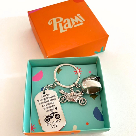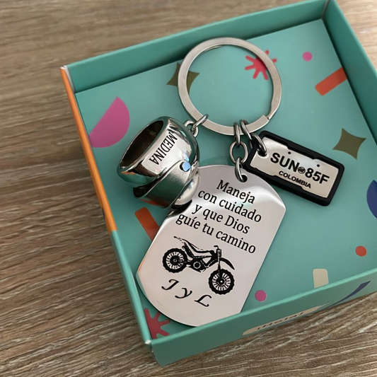 Llavero De Placa Militar Con Dije De Casco Y Dije De Moto