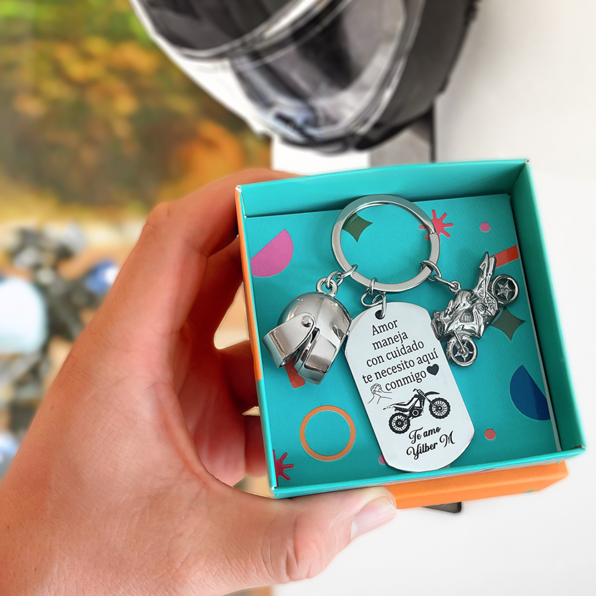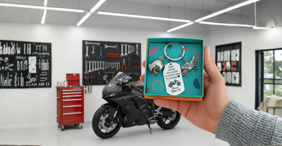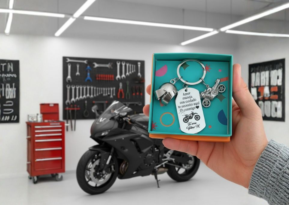 Llavero De Placa Militar Con Dije De Casco Y Dije De Moto