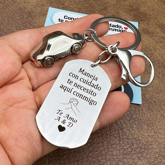 Llavero De Placa Militar Con Dije De Carro Con Placa Pequeña