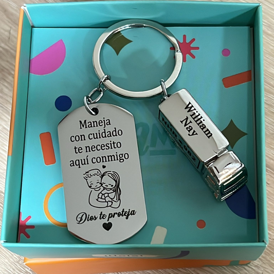 Llavero De Placa Militar Con Dije De Camion Con Placa Pequeña