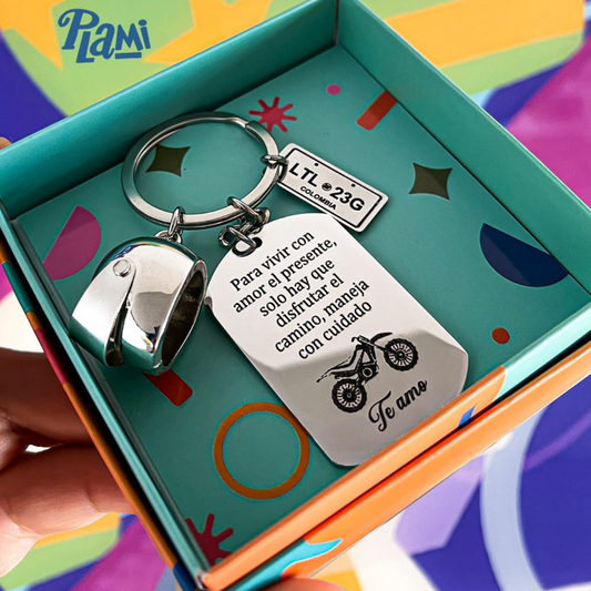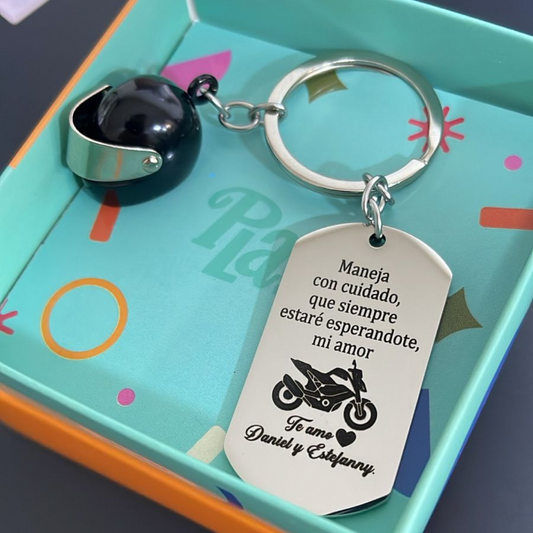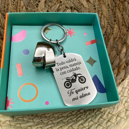 Llavero De Placa Militar Con Dije De Casco Y Dije De Moto