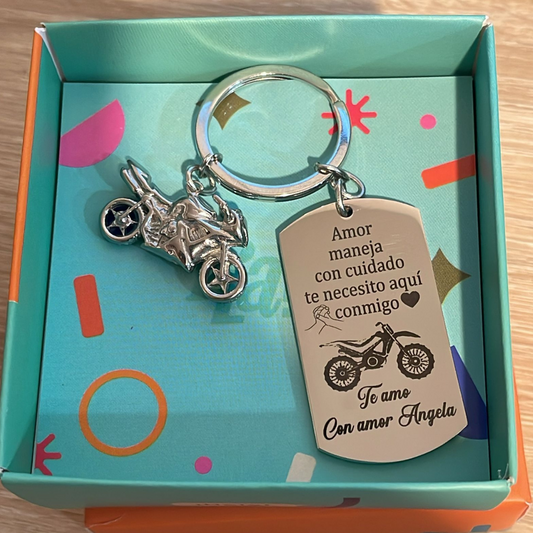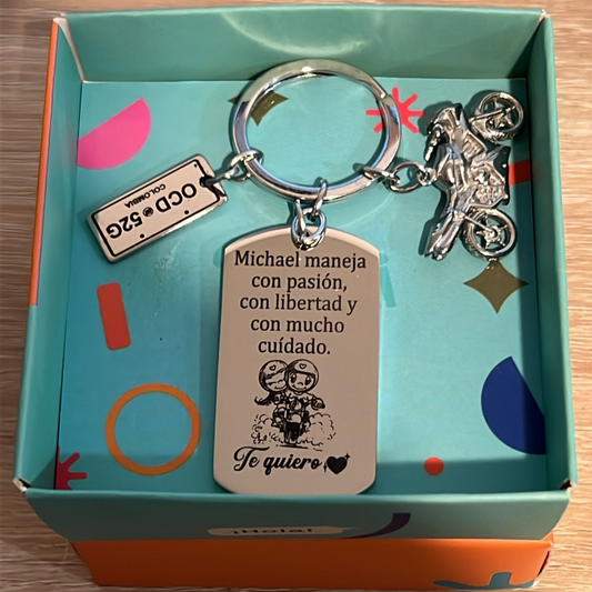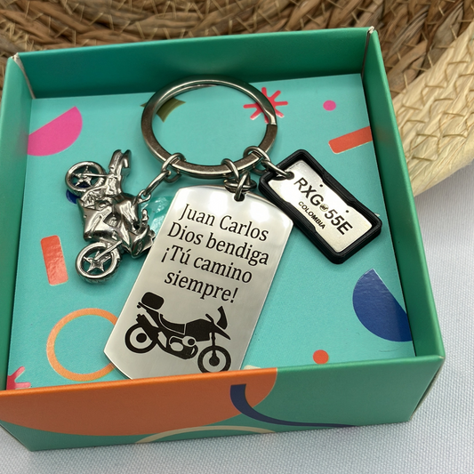 Llavero De Placa Militar Con Dije De Moto Y Placa Pequeña Con protector